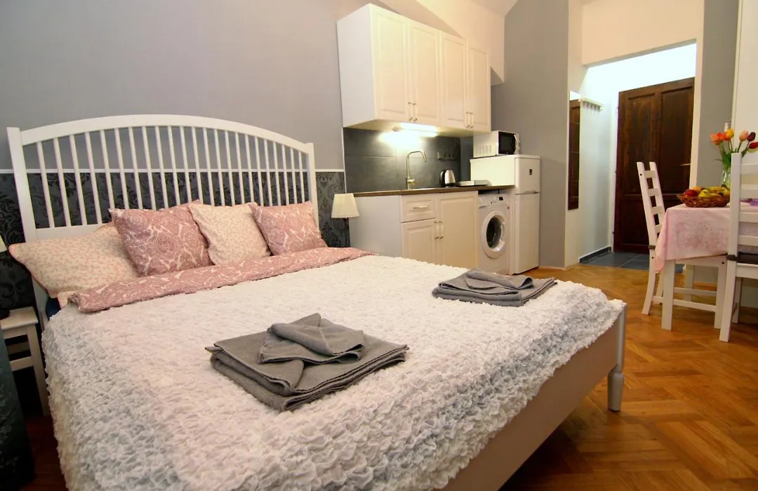 Поряд з кавоваркою, в апартаментах є мінікухня, обладнана мікрохвильовою піччю, електрочайником і холодильником. Апартаменти розташовані на відстані майже 5 хвилин їзди від автобусної зупинки Na Smetance та на невеликій відстані від залізничного вокзалу Головний Праги.